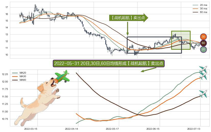 形态多维评估: ⚀ 2022-04-13日-2022-07-13日显现 20日-30日-60日均线 【战机起航】卖出点 看空信号,后市看跌,卖出