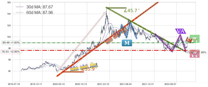 ♞ 30日均线:87.67,60日均线:87.96→ 快线<慢线