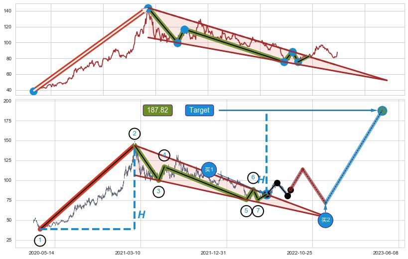 ➢ 【买1】: 激进型 买点 →(2022-05-26: 82.29 )形成突破降🚩楔型【整理】形态