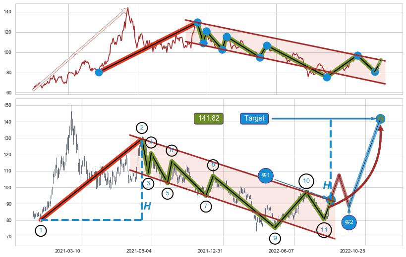 ➣ 最小中继整理涨幅→𝐇: 49.19 (𝐇旗杆的长度:旗杆起点→顶点)