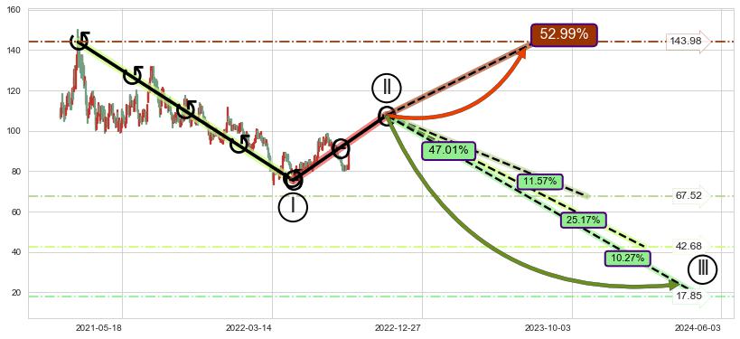 ➢ 循环浪继续向下【最低】位置(2024-06-03, 17.85),匹配聚类样本比例21.84%, 可能性概率10.27%