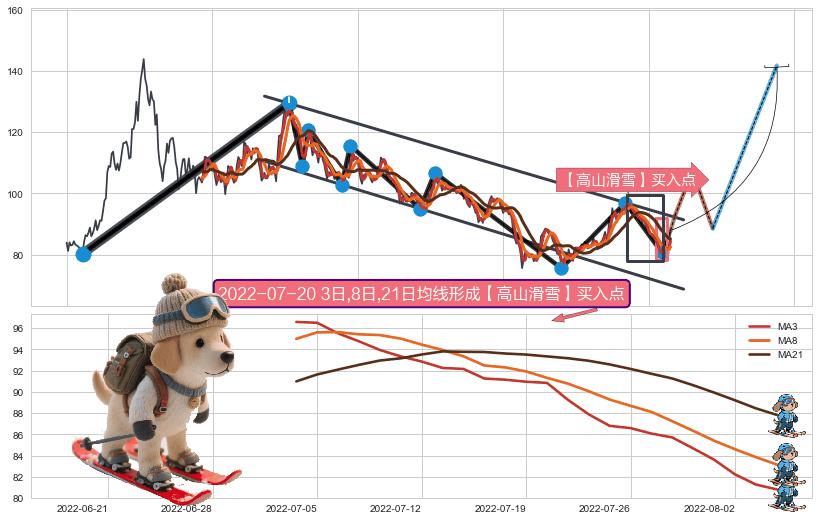 | 3 🅚:上探下跌 ➕ 🎢:【战机起航】卖出点均线组合卖出点信号形成后,猜想后续上行结束,持续回落下跌(均值回复) ☞ 看空信号 ⇥ 【均线】交织【🅚线】⇥ 综合量化分数: 45 | > |
