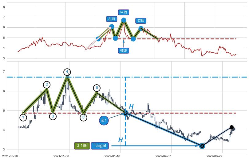 ➣ 【已确认突破】三重顶 起点:2021-07-28,突破点:2022-01-25,形态共122交易日