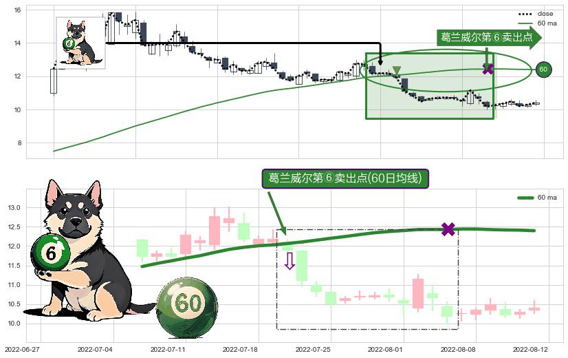 ⚀ 2022-07-20-日显现 葛兰威尔均线 60日均线 第⑥卖出点 走势反转见顶信号,后市看跌,卖出信号