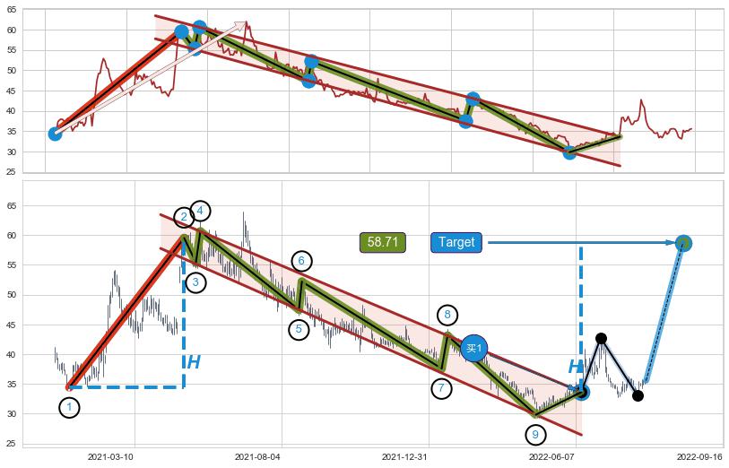 ➣ 最小中继整理涨幅→𝐇: 25.09 (𝐇旗杆的长度:旗杆起点→顶点)