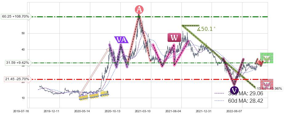 ♘ 阻力价格位31.59,可信任强度50.85%,距离最后交易2022-08-12形成的收盘价格28.87相差 +9.42%