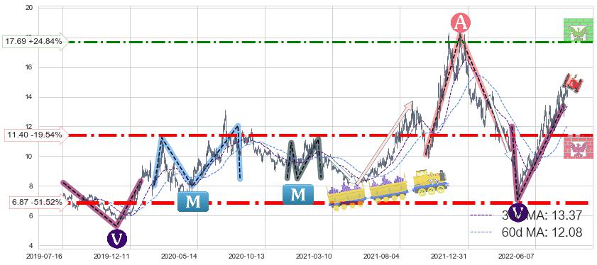 ♘ 阻力价格位17.69,可信任强度55.51%,距离最后交易2022-08-12形成的收盘价格14.17相差 +24.84%