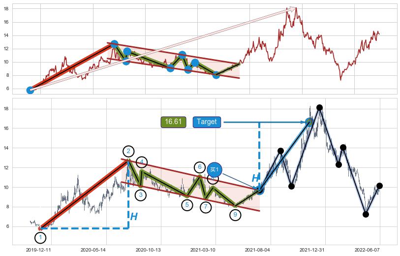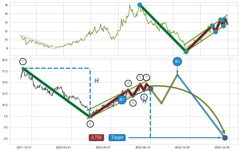 ➣ 最小中继整理涨幅→𝐇: 6.93 (𝐇旗杆的长度:旗杆起点→顶点)