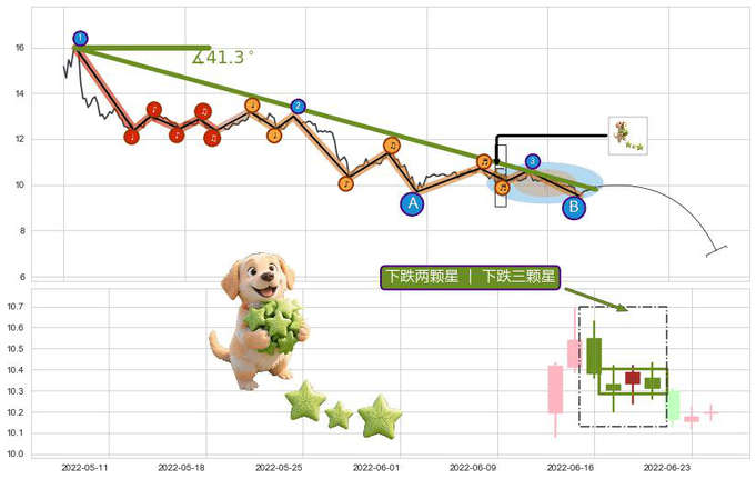 ➢ 🕰 价格走势在2022-06-16至2022-06-21期间形成下跌两颗星 | 下跌三颗星,残存影响值:-4.86