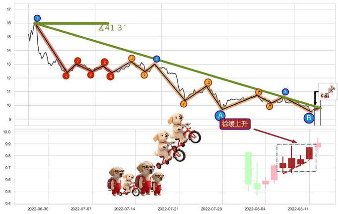 ➢ 🕰 价格走势在2022-08-08至2022-08-11期间形成徐缓上升,残存影响值:9.22