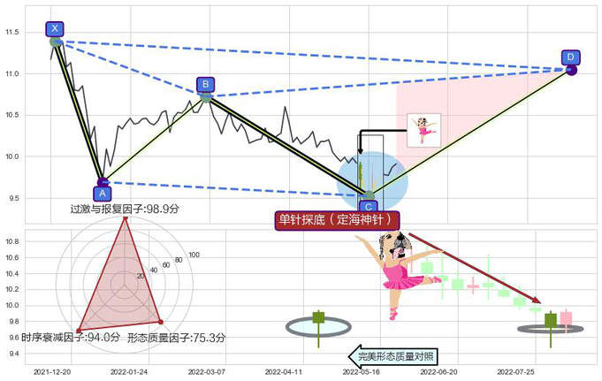 ➢ 🕰 价格走势在2022-08-01至2022-08-01期间形成单针探底(定海神针),残存影响值:6.19