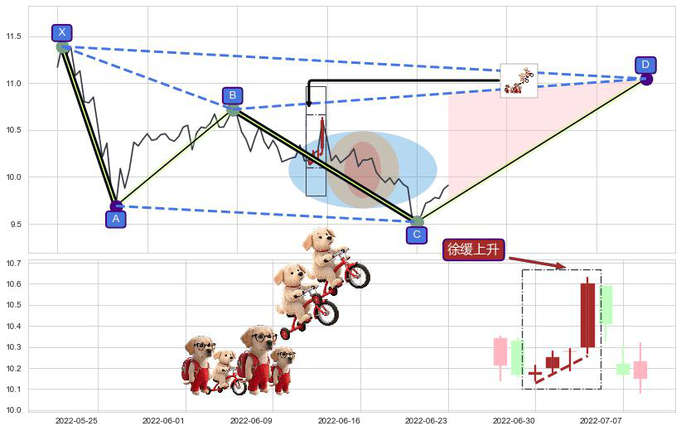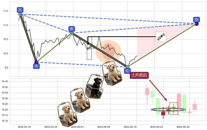 ➣ 未完成【螃蟹】形态起点X: 2022-04-26, 已到达C点: 2022-07-05, 预测最终D点: 2022-09-23, 共98交易日