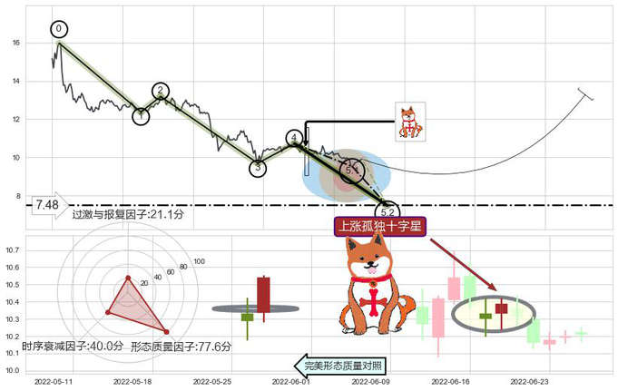 ➢ 上涨孤独十字星 🔜 波浪理论下跌浪临近浪5反弹点 综合量化分数:53.40 【中性】