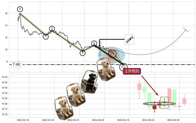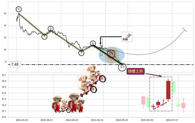 ➢ 波浪理论:猜想即将止跌 → 上涨 →【拐点】浪5临近 → 大趋势均值回复