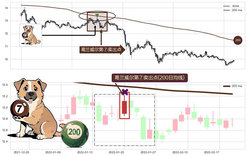 形态多维评估: ⚀ 2022-01-20-日显现 葛兰威尔均线 200日均线 第⑦卖出点 下降趋势的中继信号,后市看跌,卖出信号