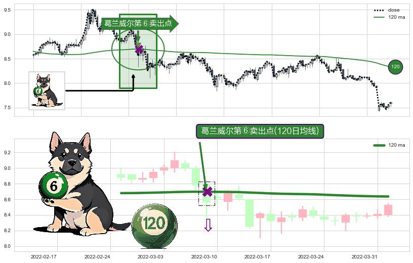 ⚀ 2022-03-09-日显现 葛兰威尔均线 120日均线 第⑥卖出点 走势反转见顶信号,后市看跌,卖出信号