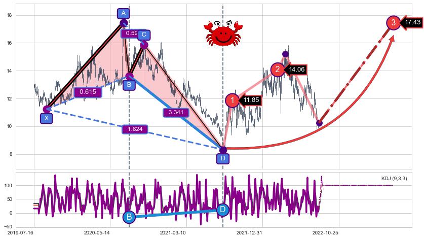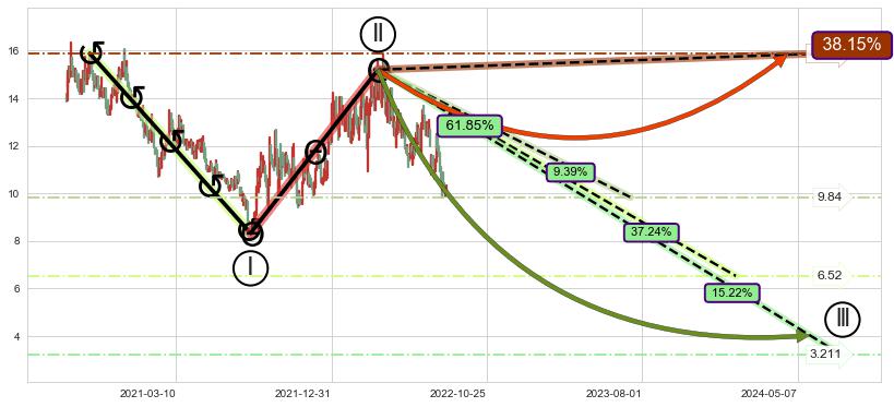 ➣ 2022-03-07到达第❷价格目标位置14.06