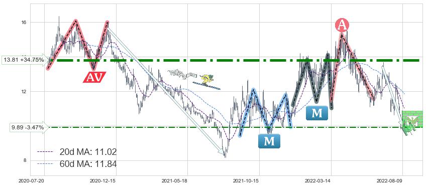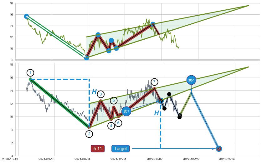 ➣ 2022-07-15到达第❷价格目标位置10.95