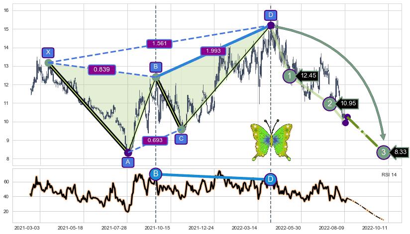 ➣ 已完成【蝴蝶】形态起点X: 2021-03-16, 终点D: 2022-04-06, 共257交易日