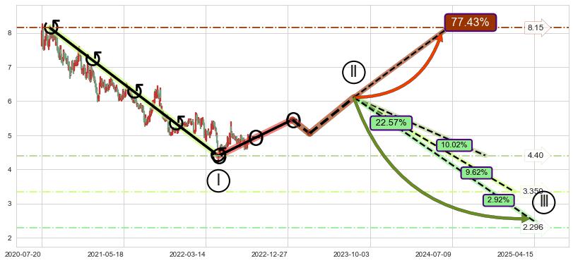 ➣ AI预测: 假定反转启动后, 第❸目标位置(2023-01-18, 4.40)