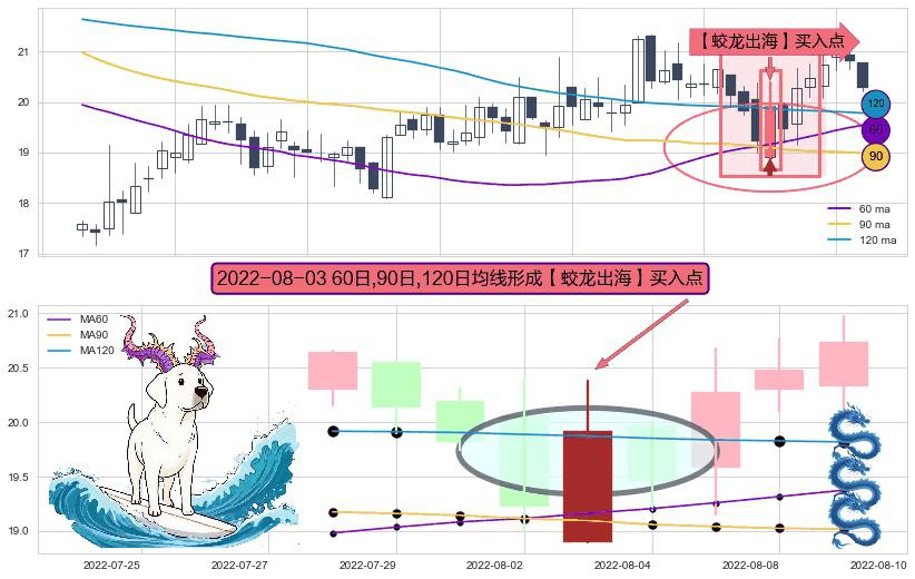 ⚀ 2022-08-03日显现 60日-90日-120日均线 【蛟龙出海】买入点 看多信号,后市看涨,买入