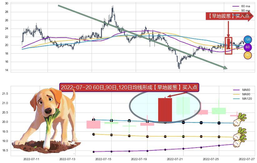 ⚀ 2022-07-20日显现 60日-90日-120日均线 【旱地拔葱】买入点 看多信号,后市看涨,买入