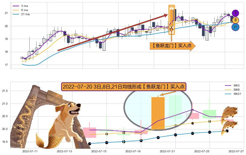 ⚀ 2022-07-20日显现 3日-8日-21日均线 【鱼跃龙门】买入点 看多信号,后市看涨,买入