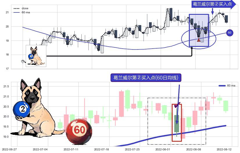 ⚀ 2022-08-02-日显现 葛兰威尔均线 60日均线 第②买入点 上升趋势的中继信号,后市看涨,买进信号