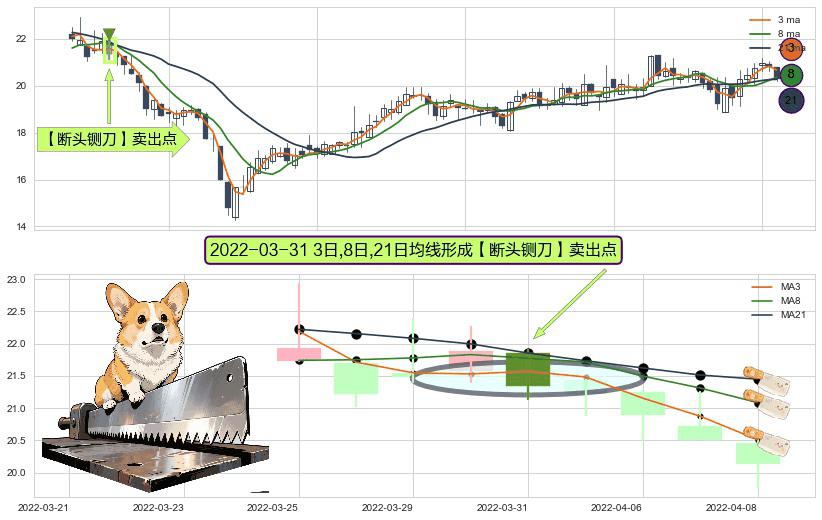 ⚀ 2022-03-31日显现 3日-8日-21日均线 【断头铡刀】卖出点 看空信号,后市看跌,卖出