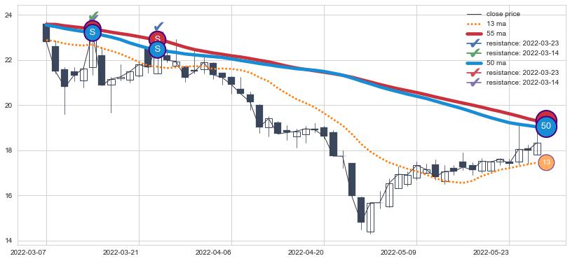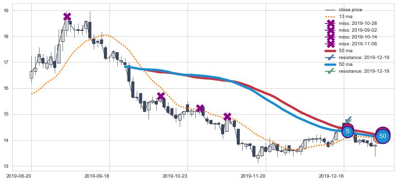⚁ MA3和MA8走势平行,且始终保持在短距离内,MA21始终在短中期均线下方,与短中期均线保持一定的距离,微微上行