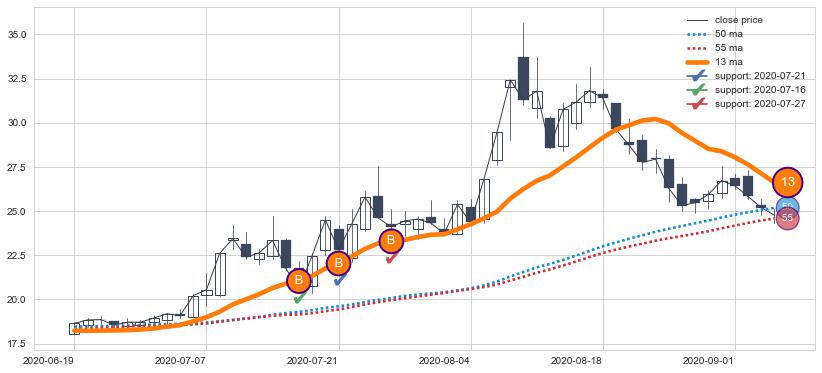 ⚄ 价格在均线获取支撑后再次向上反弹了【较短】距离, 第②买入点 支撑效果【仍需验证】