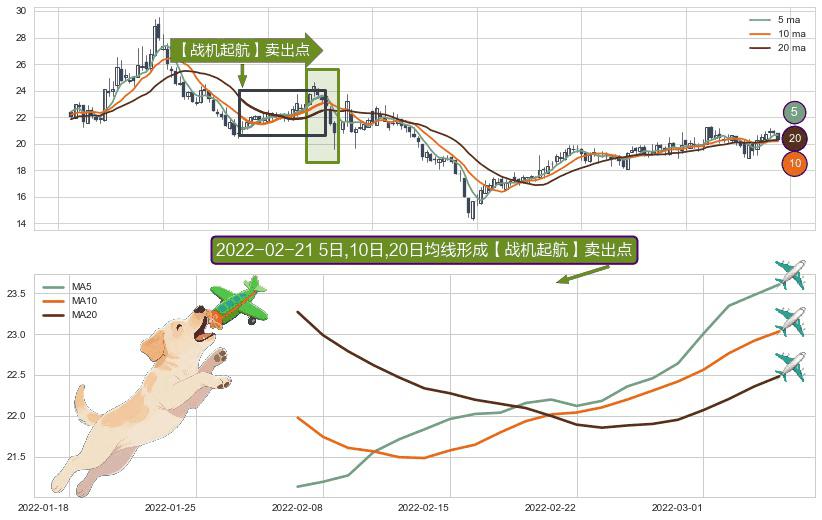 ⚀ 2022-02-07日-2022-03-04日显现 5日-10日-20日均线 【战机起航】卖出点 看空信号,后市看跌,卖出
