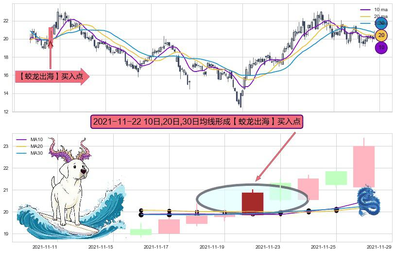 形态多维评估: ⚀ 2021-11-22日显现 10日-20日-30日均线 【蛟龙出海】买入点 看多信号,后市看涨,买入