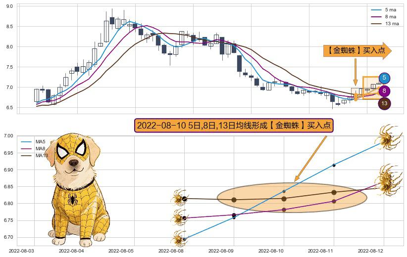 形态多维评估: ⚀ 2022-08-10日显现 5日-8日-13日均线 【金蜘蛛】买入点 看多信号,后市看涨,买入