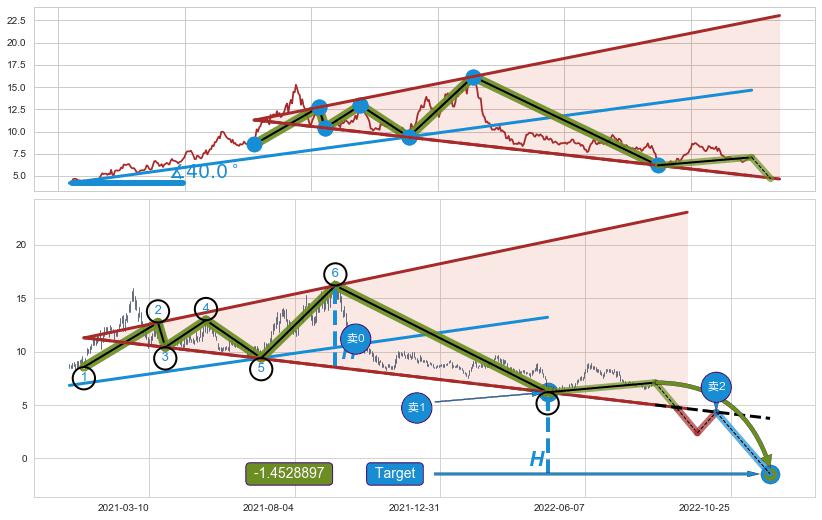➣ 最小中继整理涨幅→𝐇: 9.87 (𝐇旗杆的长度:旗杆起点→顶点)