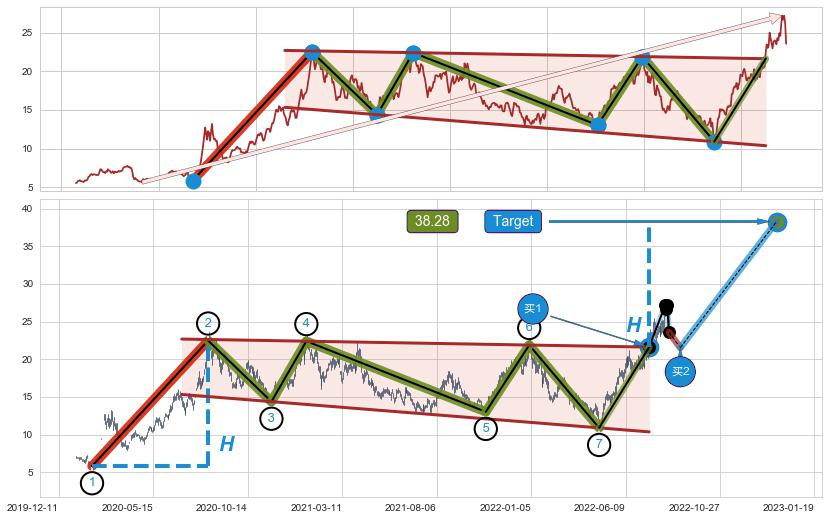 ➣ 最小中继整理涨幅→𝐇: 16.66 (𝐇旗杆的长度:旗杆起点→顶点)