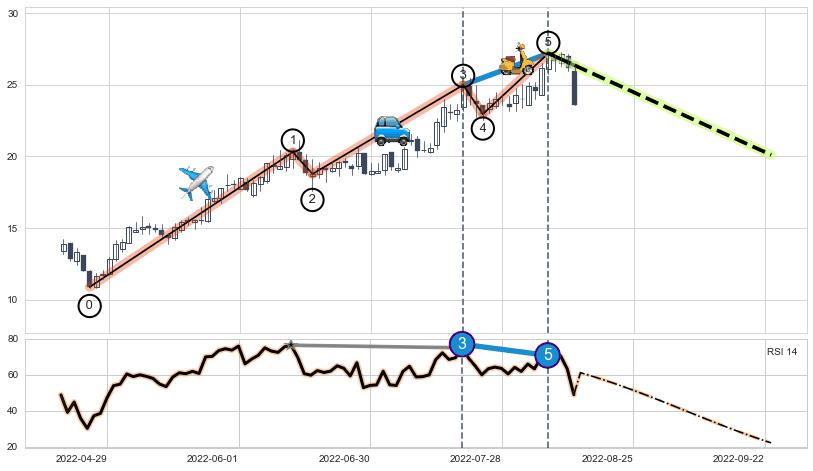 ➣ 【RSI】缠论走势出现【常规背离 & 反转信号】背离程度20.63%,背离夹角角度50.3˚,背离程度中等