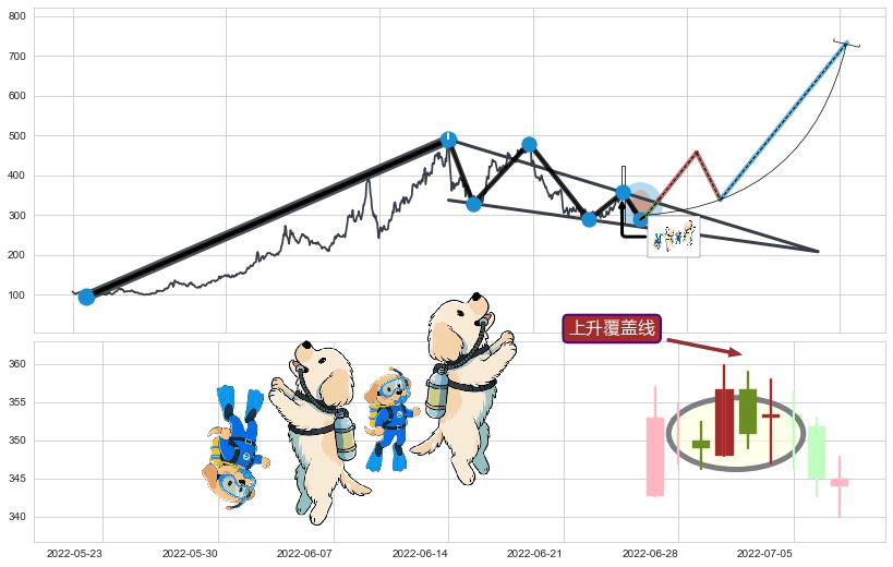 | 14 🅚:上涨螺旋桨形态 ➕ 🎢:【高山滑雪】买入点均线组合买入点信号形成后,猜想后续下行结束,持续反弹上涨(均值回复) ☞ 看多信号 ⇥ 【均线】交织【🅚线】⇥ 综合量化分数: 52 | > |