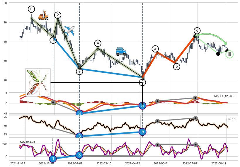 ➢ a,c调整浪MACD, RSI, KDJ走势都【未出现】背离,abc走势延续, 5浪反转概率增强