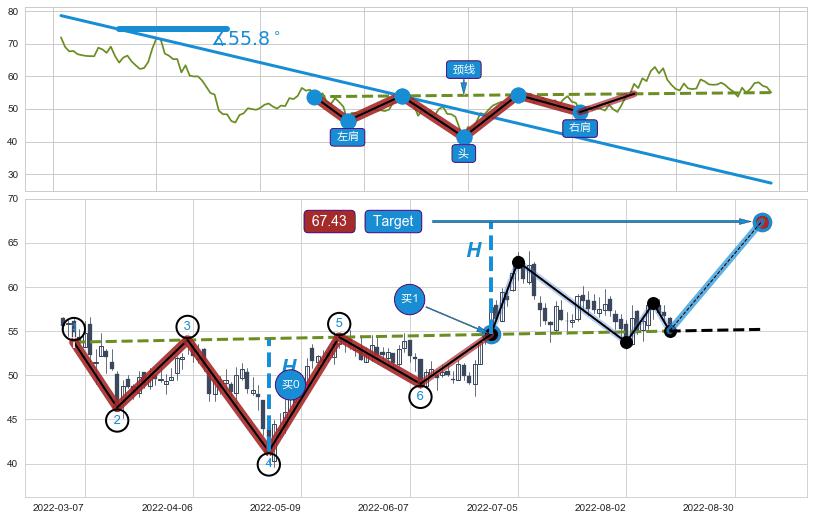 ➢ AI预测: 假定反转启动后, 第❷目标位置(2023-03-16, 51.67)