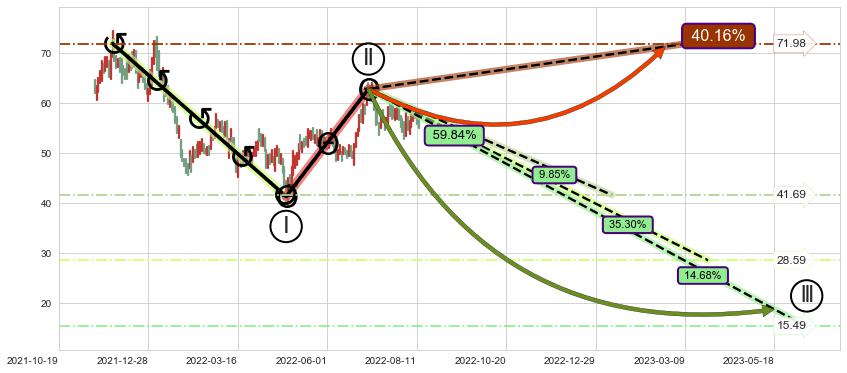 ➣ D点拟合预测价格68.31,距离最后交易收盘价格55.04相差 +24.12%