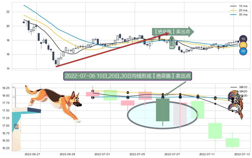 ⚀ 2022-07-06日显现 10日-20日-30日均线 【绝命跳】卖出点 看空信号,后市看跌,卖出