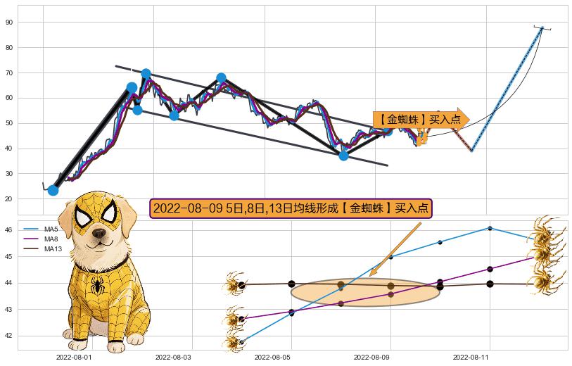 | 8 🅚:【金蜘蛛】买入点 ➕ 🌊:波浪理论上涨5浪延续:猜想C点强支撑小回调终止,猜想保持上涨5浪方向拉升(均值回复后大周期继续趋势跟踪) ☞ 看多信号 ⇥ 【均线】交织【图形】⇥ 综合量化分数: 79 | > |