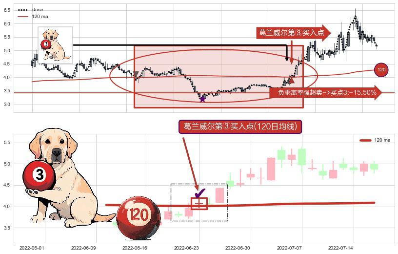 ⚀ 2022-06-23-日显现 葛兰威尔均线 120日均线 第③买入点 上升趋势的中继信号,后市看涨,买进信号