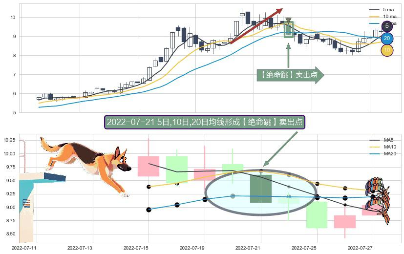 形态多维评估: ⚀ 2022-07-21日显现 5日-10日-20日均线 【绝命跳】卖出点 看空信号,后市看跌,卖出