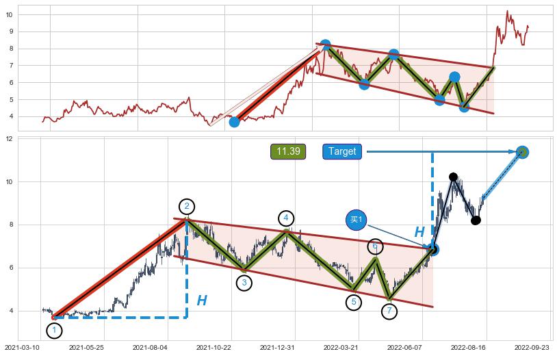 ➣ 最小中继整理涨幅→𝐇: 4.54 (𝐇旗杆的长度:旗杆起点→顶点)