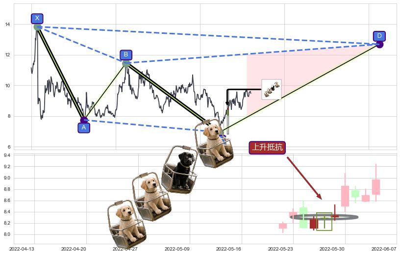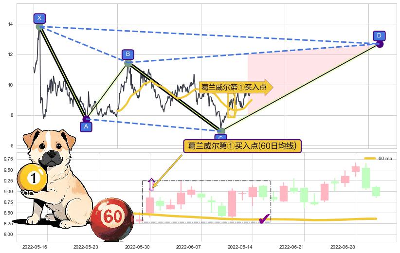 ➣ D点拟合预测价格12.69,距离最后交易收盘价格9.48相差 +33.83%