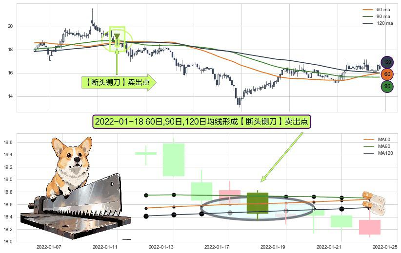 ⚀ 2022-01-18日显现 60日-90日-120日均线 【断头铡刀】卖出点 看空信号,后市看跌,卖出