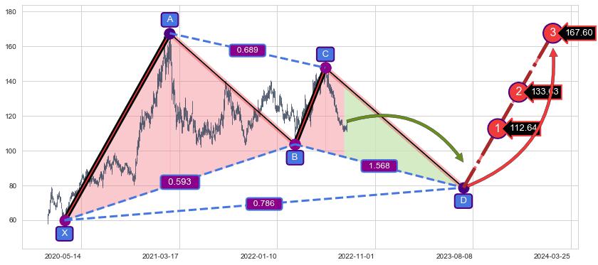 ➣ 未完成【伽利】形态起点X: 2020-03-23, 已到达C点: 2022-06-13, 预测最终D点: 2023-07-12, 共810交易日