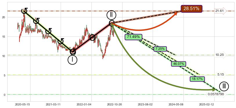 ➣ D点拟合预测价格19.46,距离最后交易收盘价格16.16相差 +20.44%